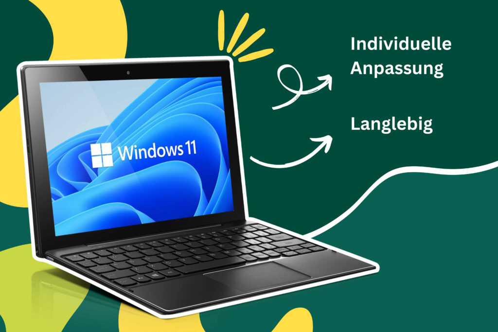 Unsere Laptops sind “Ready to Go”, bereits ausgestattet mit Windows 11, der MS Office 2024 Dauerlizenz, E-Mail-Einrichtung, sämtlichen Treiberinstallationen und unserem Updateservice. Auch die Datenübertragung auf Ihr neues IT-Gerät ist bei uns kein Problem.